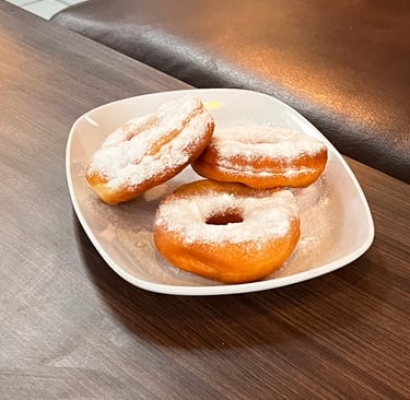 Donat lembut dengan taburan manis yang ringan.