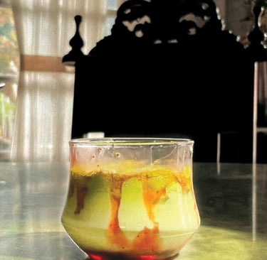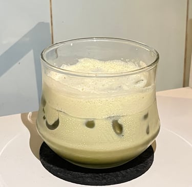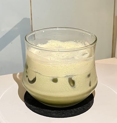 Minuman susu dan matcha dengan rasa halus dan seimbang.