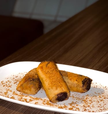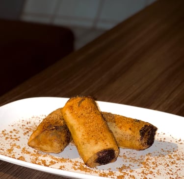Pisang goreng dengan cokelat leleh yang manis dan nyaman.