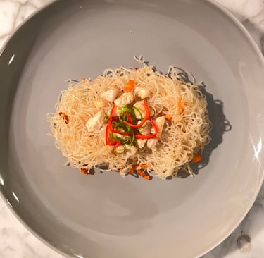 Bihun hangat dengan rasa gurih dan sentuhan pedas ringan.