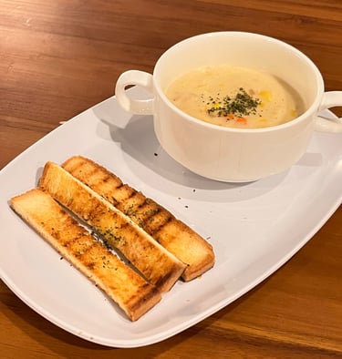 Sup krim hangat dengan rasa lembut dan menenangkan.